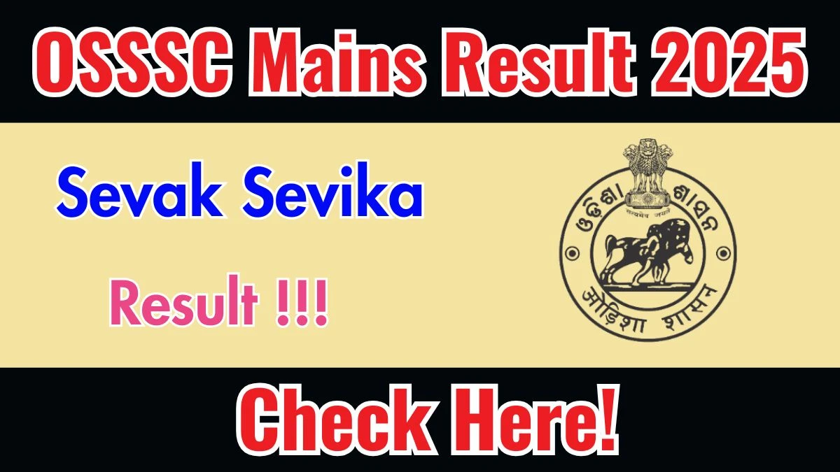 The OSSSC Sevak Sevika Mains Result 2025 is expected to be released in